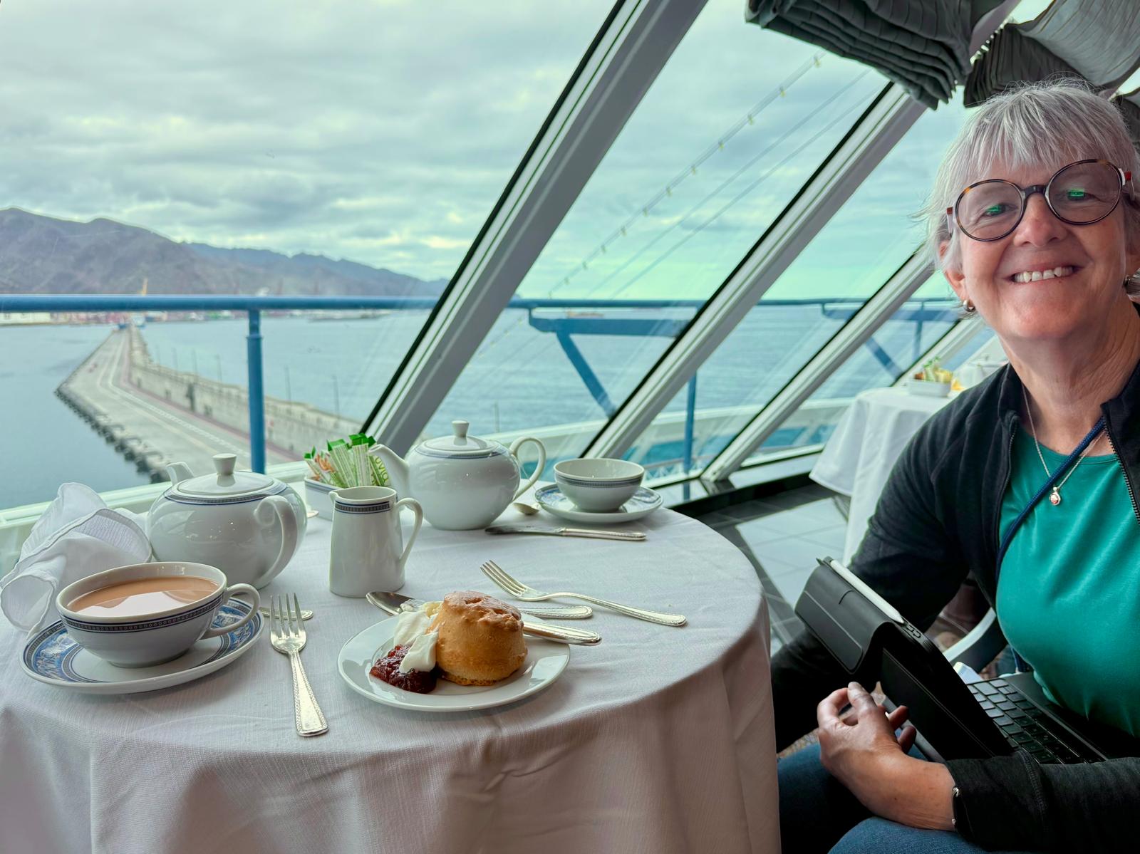 It would be easy to do nothing on a sea day except eat… but we opted to balance that out with a bit of exercise. I did a cardio session before joining the sunrise stretch and Roger also started the day in the gym. After breakfast I went to my second Bridge lesson. I am really starting to see why people enjoy this game. Then it was time for a bit of a rest and a catch up before lunch.