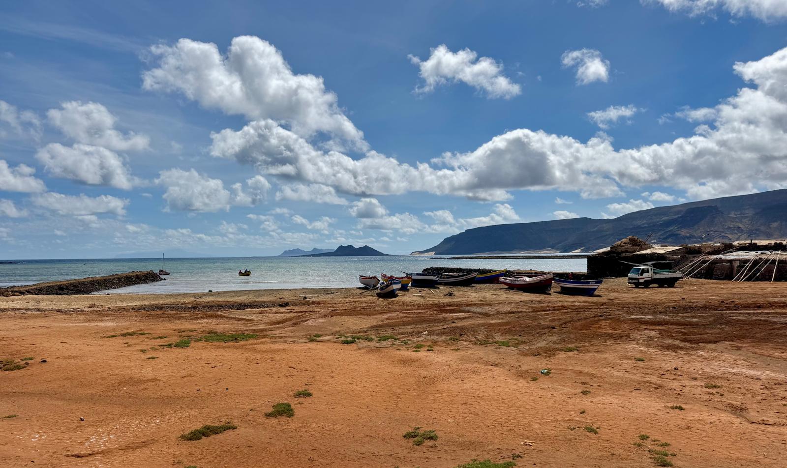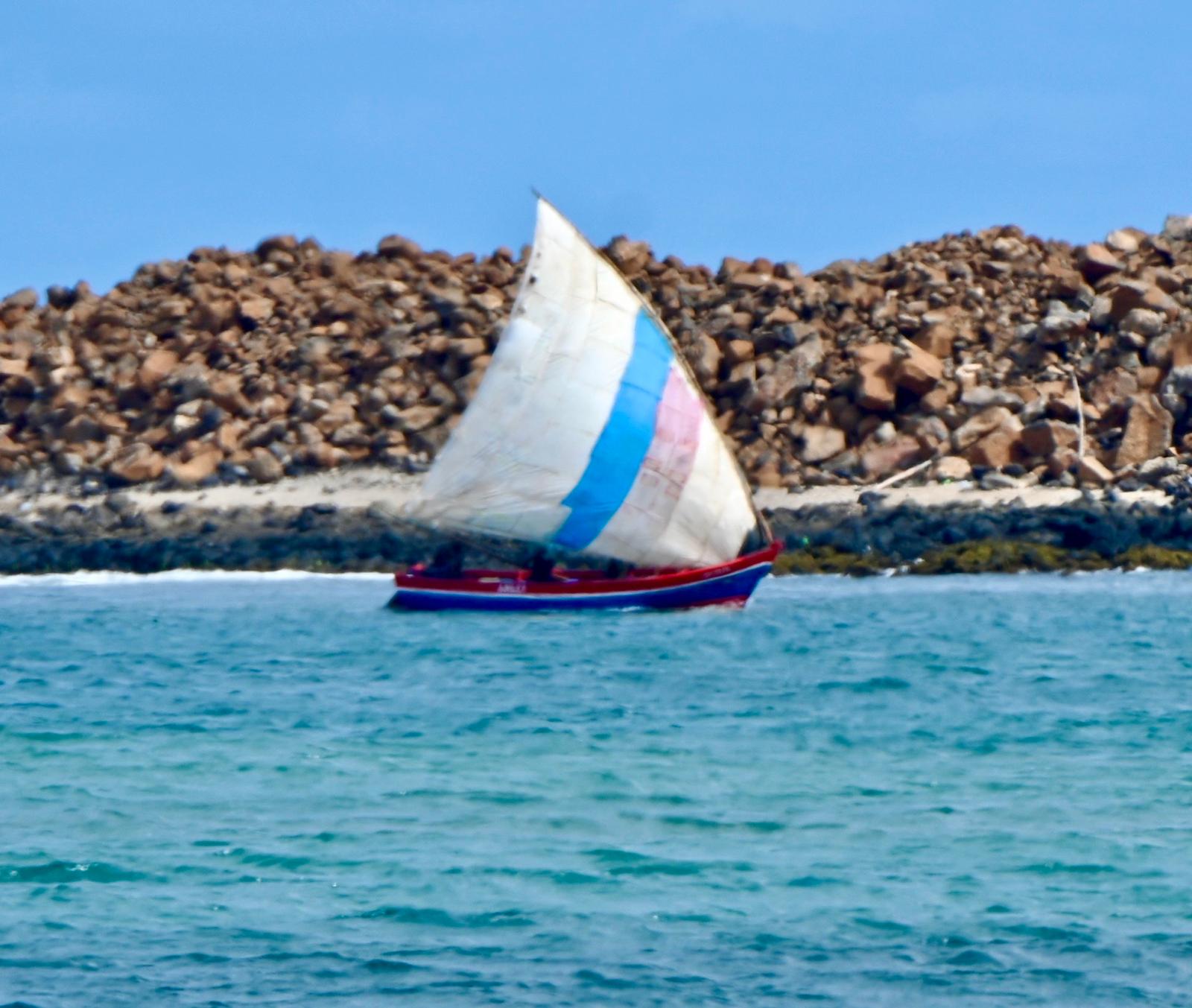 From the nearby beach we could sea a couple of small fishing boats returning to land under sail. The original sand on the island is black due to the volcanic nature of the land. Many of the beaches are now covered with fine white sand that apparently blows over here from the Sahara desert.