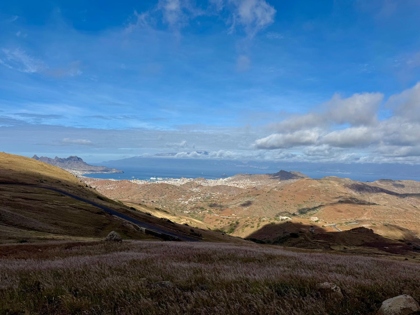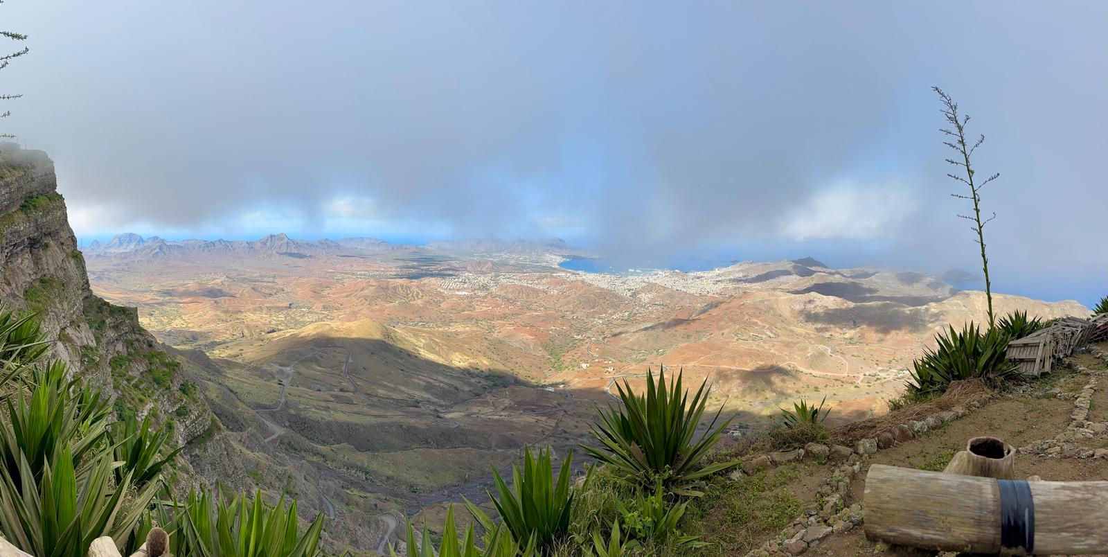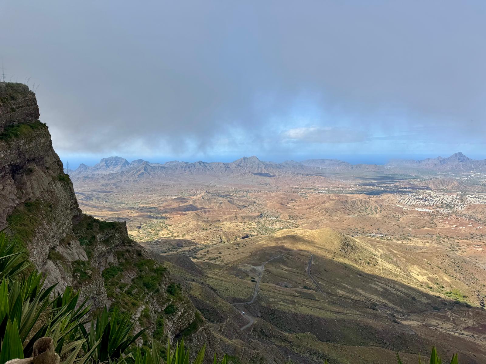 We headed straight out of the city, passing lots of half finished buildings along the way. Apparently these belong to Cabo Verdians who have travelled overseas for work. When they return they build their houses as they can. We headed up a narrow, winding cobbled road to the top of Mount Verde, the highest point on the island at ~750m. It seems every tourist follows a similar route as there were many buses, vans and taxis along the way. We even saw a few brave souls making the trek on foot. I was grateful that we had pre-booked a private guide and weren’t stuffed in a bus with a whole lot of others. We made several stops along the road to the top to take photographs of the surrounding countryside and the views back over Mindelo. I was struck by how large the Sirena looked in this small port, given that it is actually a fairly small cruise ship.