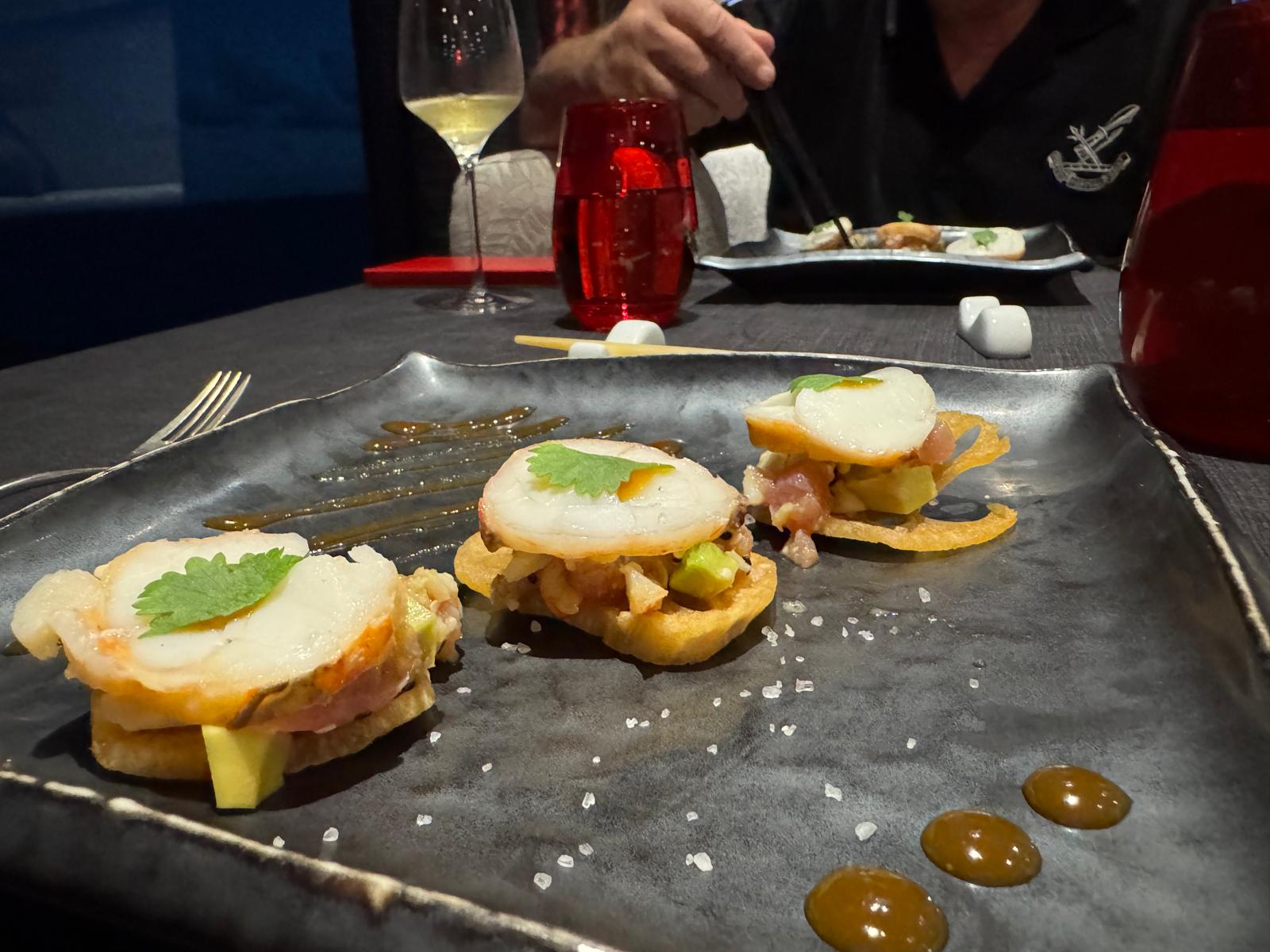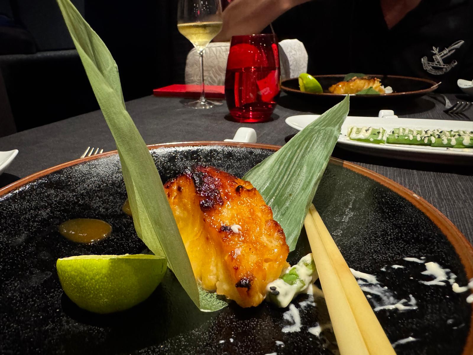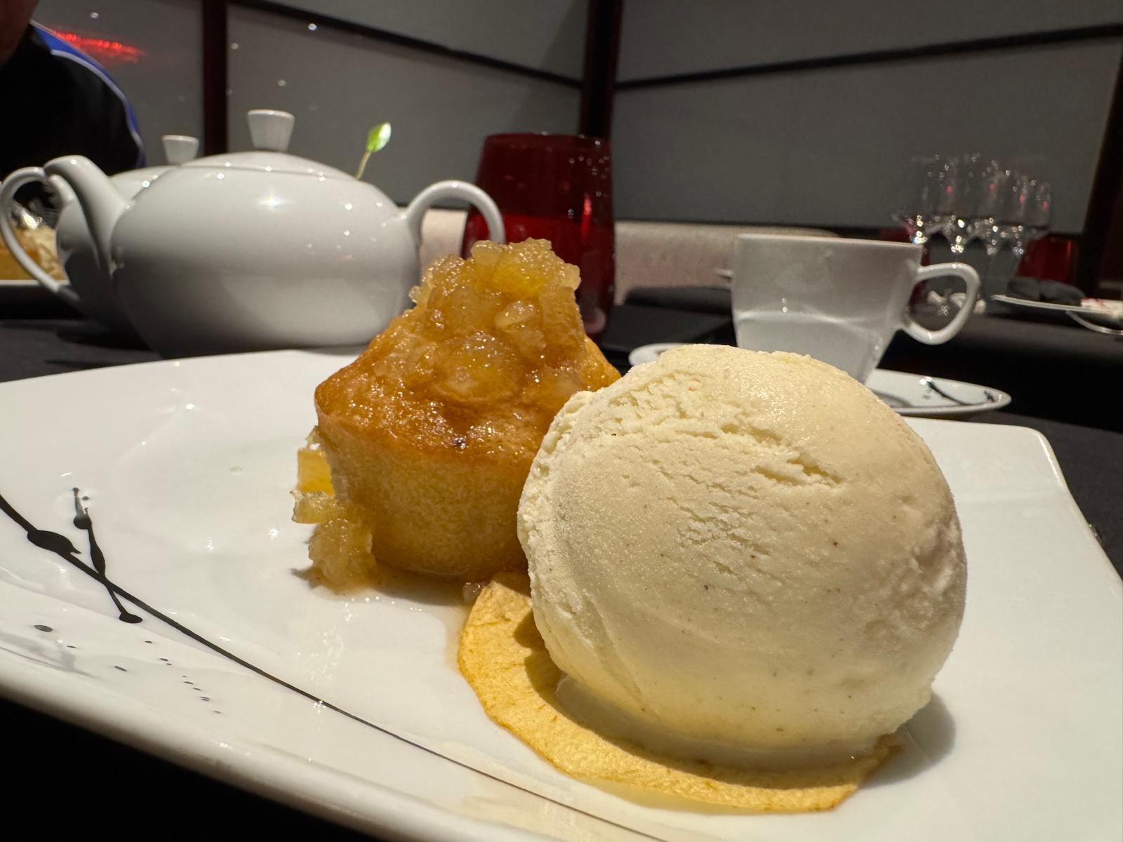 This evening we had a reservation at Red Ginger, the specialty Asian restaurant on board. This is the first time we have had dinner this trip and it was absolutely delicious. I know some of you have shown interest in the food. We both had a lobster and avocado salad, followed by Miso-glazed sea bass and then Steamed Ginger pudding with apple and cardamom ice cream.