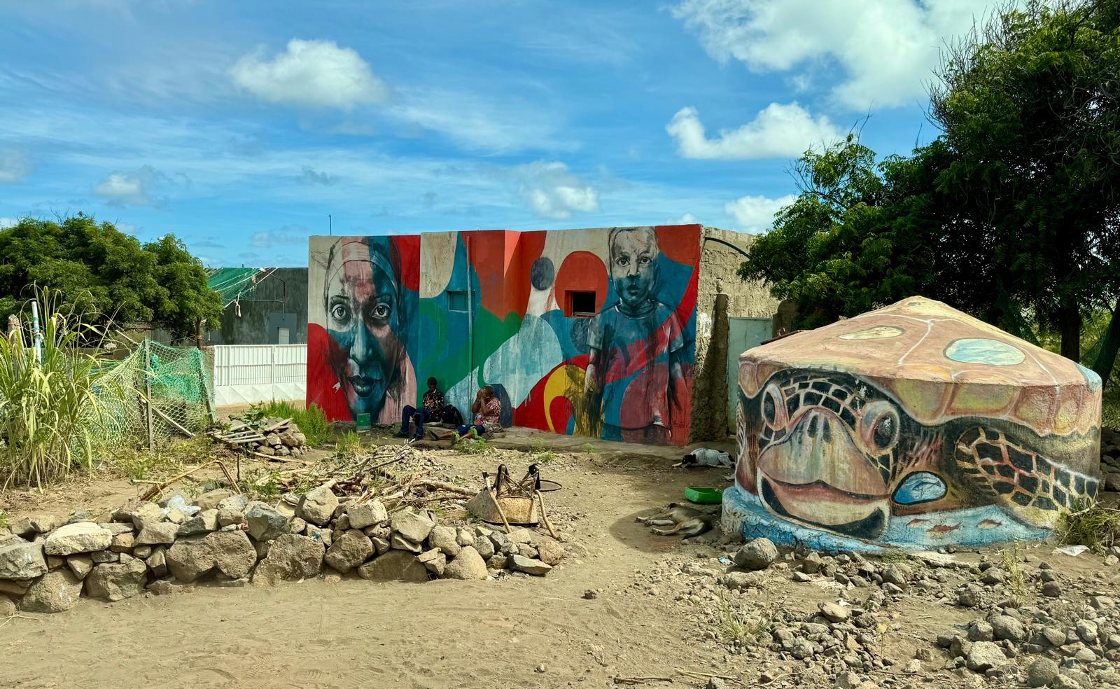 We drove a little further to another fishing village, Baia das Gatas. This small village hosts the largest music festival in Cabo Verde, drawing local and international bands and thousands of visitors every year. The town only has a population of about 500, with many holiday rental homes. The town boasts a very sheltered, safe swimming area and a large stage area for the music festival.