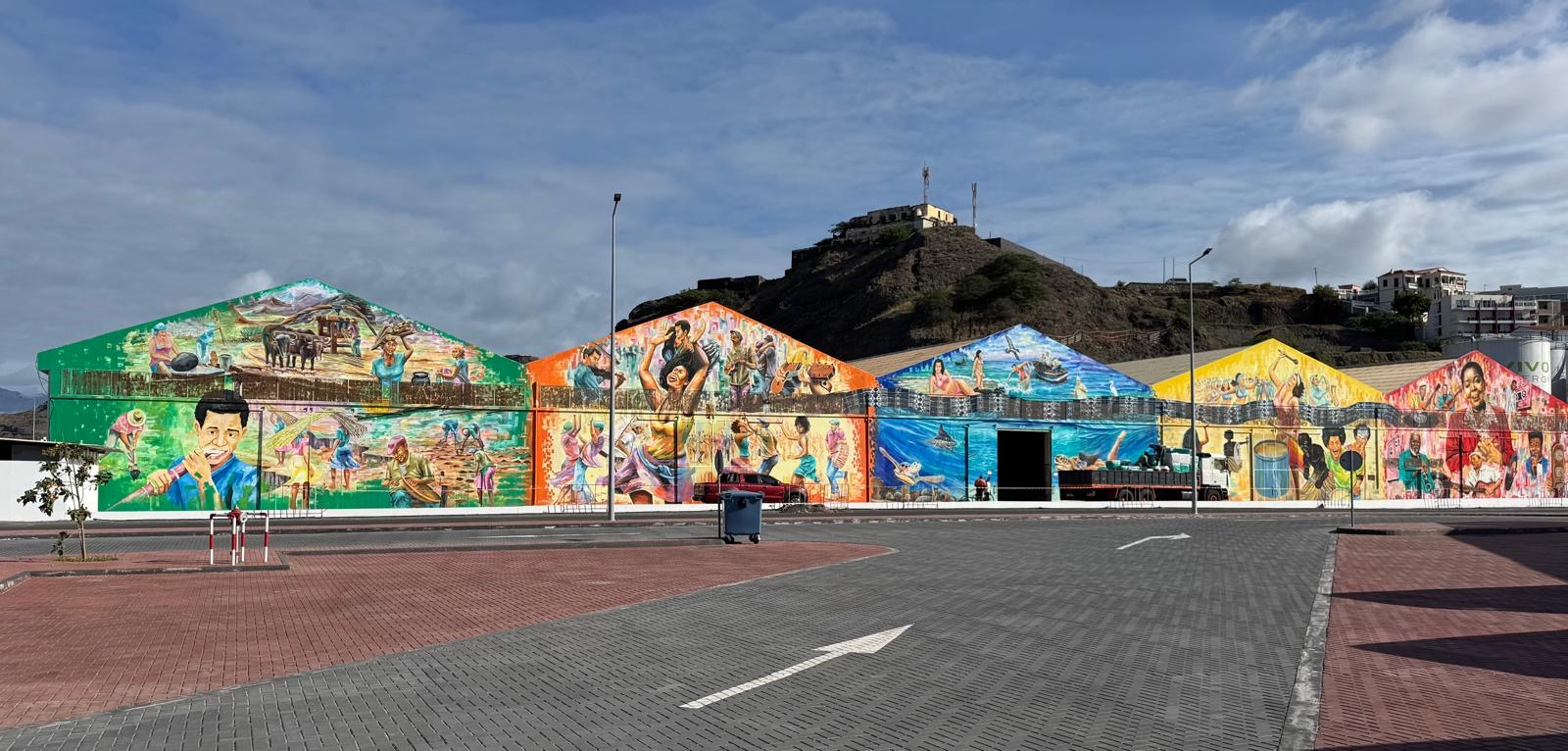 After a quick breakfast back in our room we headed off the ship and walked along the port to meet Adriana, who would be our guide for the day. She speaks impeccable English and after showing us a map of the island and our route for the day, we headed off. Mindelo is the largest city on the island of Sao Vicente, one of the several islands that make up the country of Cabo Verde. Only about 85,000 of the ~610,000 inhabitants of Cabo Verde live on Sao Vicente, and of those about 80,000 live in Mindelo. It is quite a striking town with brightly coloured buildings clinging to the hillsides.