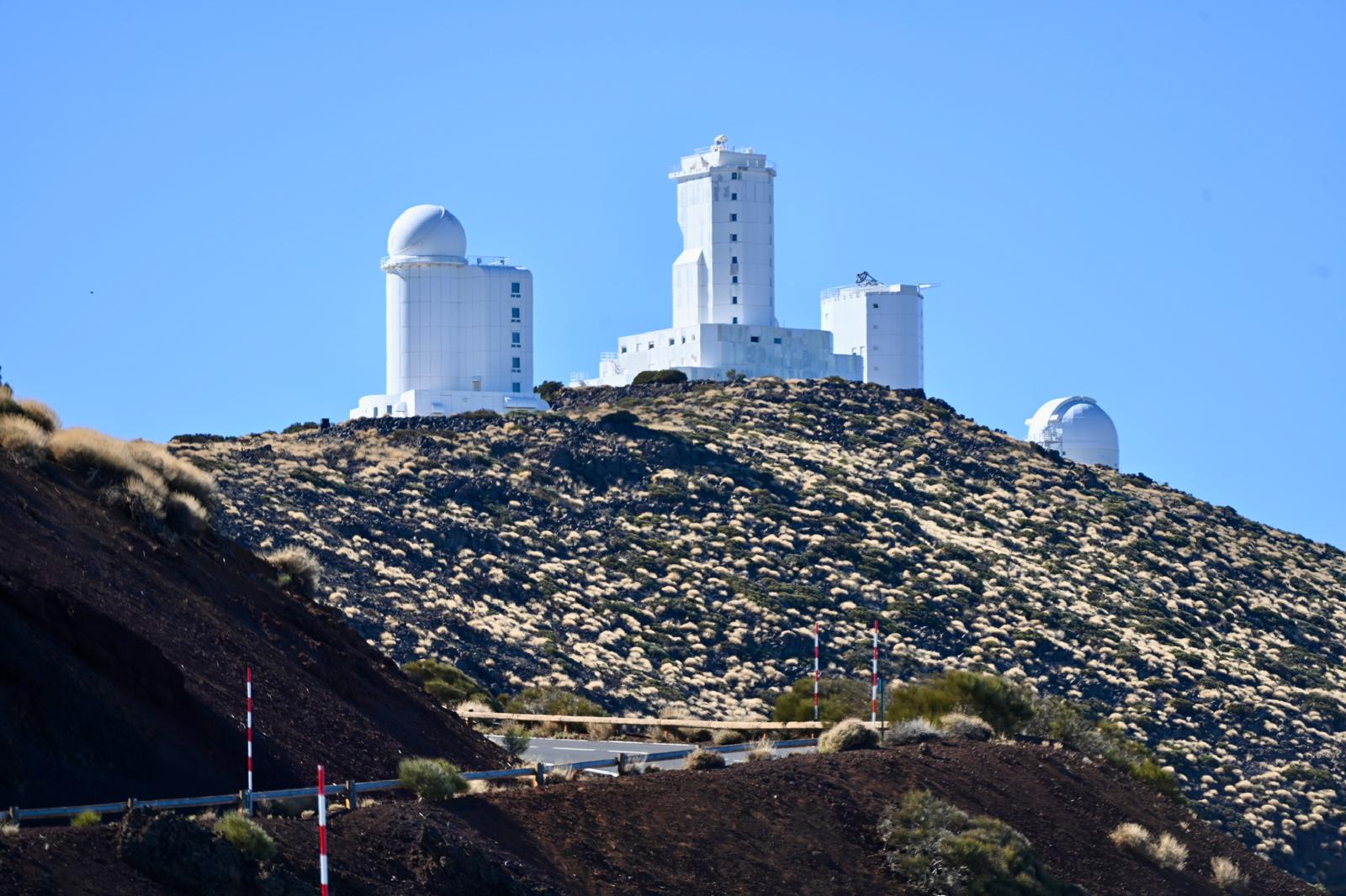 At about 2000 meters there were a number of observatory buildings standing out with their bright white paint. Apparently they belong to a number of different countries as the dry air here makes for clear night skies. We saw the odd parasailer head off the hill and disappear into the mist below.