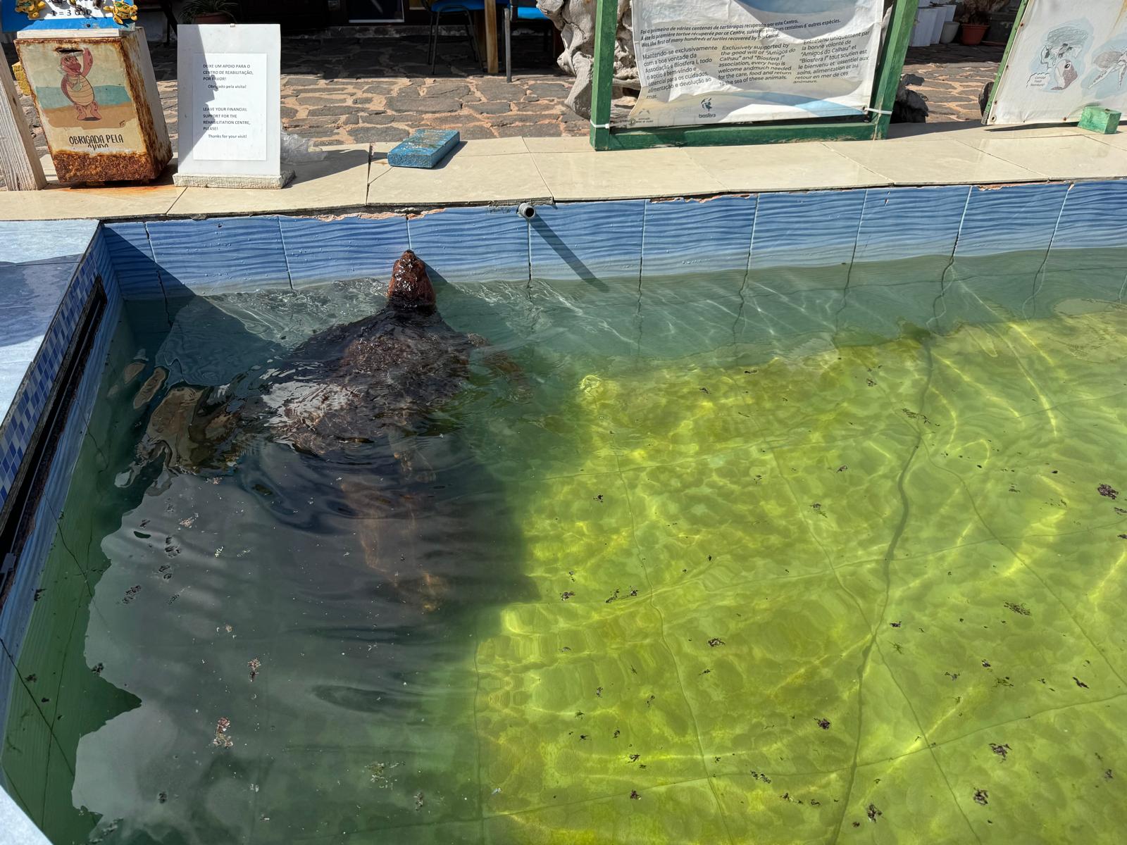 We drove a little further to another fishing village, called Calhau. There is a very small turtle sanctuary in Calhau where they help stranded baby turtles to recover until they are healthy enough to return to sea. There are two large adult turtles that are not able to be rehabilitated, one male that lost a flipper to a shark, and a female that was attacked by a dog and blinded. Whilst I applaud their efforts, the life of these two adult turtles in a tiny pool looks pretty bleak.