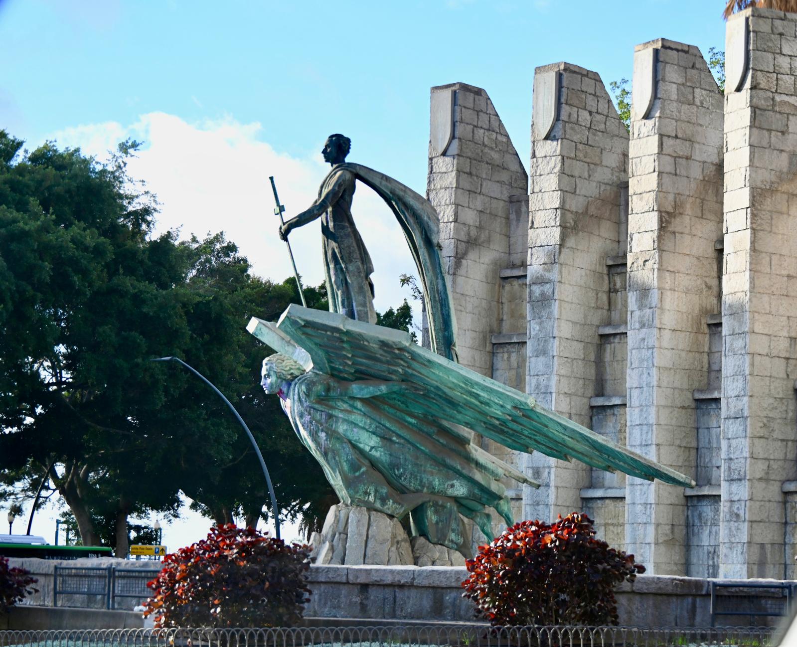 Maria drove us around the old part of town pointing out various buildings and a statue of Franko, the Spanish dictator who came to power during the Civil war (1936-1939) and ruled until his death in 1975. Originally a water feature, the water has been turned off as the young people of the island want it gone. They just don’t have the money to remove it or so the story goes.