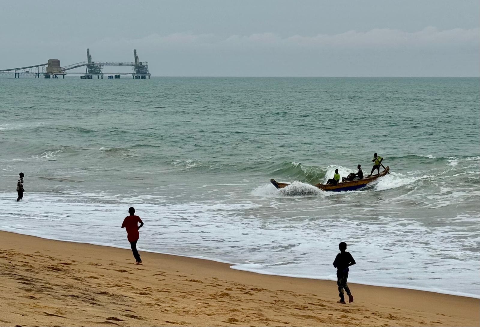 We headed out of Takoradi Harbour, the oldest of the two ports in Ghana, having been established between 1920 and 28. The second harbour is near Akra. About one-million of the 35-million total population of Ghana live in these twin cities. Huge reels of undersea cables were stacked up along the port as we left.